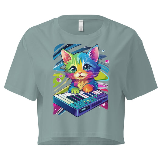 Cosmic Keyboard Kitten Relaxed Crop Tee